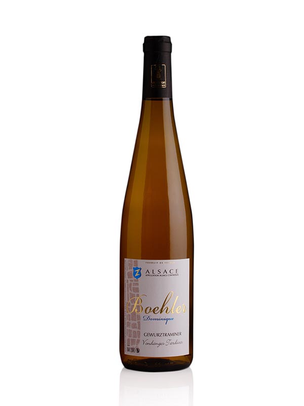Ce GEWURZTRAMINER « Vendanges Tardives », à la robe jaune dorée, vin fin et élégant. Son nez rappelle les fruits confits et exotiques. Raisins cueillis en surmaturité, tard dans la saison, issus des coteaux les mieux exposés. C’est un vin moelleux riche en arômes avec une bouche ronde et veloutée.