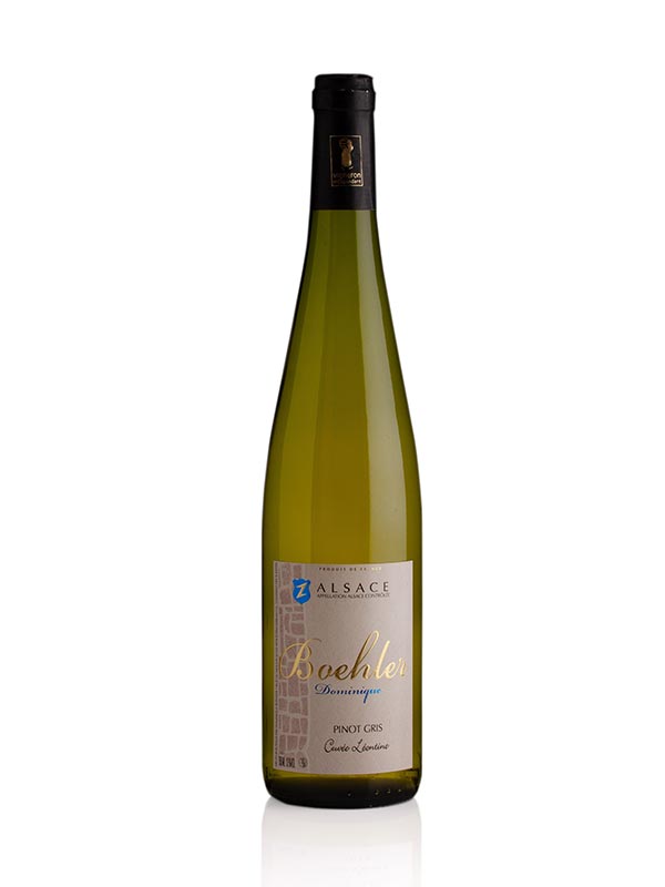 Ce PINOT GRIS « Cuvée Léontine »  à la robe jaune soutenue, vin avec des notes fumés et grillées, élevé sur lies durant 6 mois, ce qui lui confère du gras et de l’opulence.